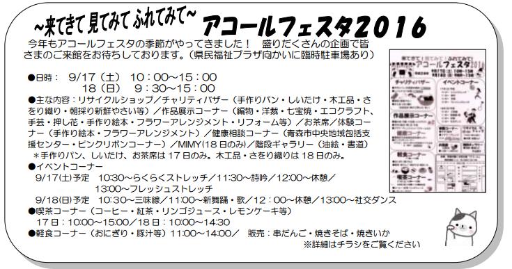 ・9/17(土)、18(日) アコールフェスタ2016