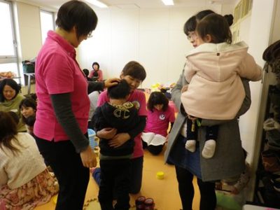 目が合えばニコニコしてくれるママさんやチビちゃんに癒され、ほっぺツンツン、おててにぎにぎ、おひざに抱っこ、ちっちゃいおててでバイバイ。