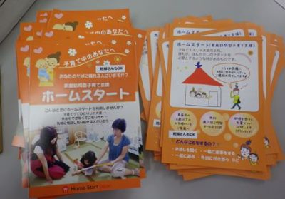 産前の妊婦さんもホームスタートを利用してほしいね…と願いを込めて、スタッフで貼り貼り内職。