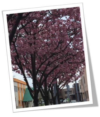 アピオ前も濃いピンクの大山桜が咲いてきました♪