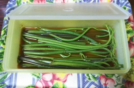 ⇒すかさず、軍手を取り出し山菜取りをする夫っと!そして、今朝の味噌汁とワラビ取りをした時のお楽しみ⇒『ワラビのからし醤油漬け』を作りました。 ^-^v