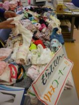 今日は、もらってってけへ~・コーナーに子供服やオムツなど、差し入れ多数!