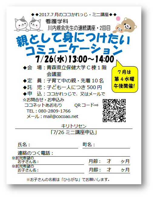 7月の「ココかれっじ・ミニ講座」