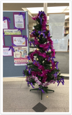 アピオあおもりの玄関ホールには、パープルリボンにちなんだ紫のツリーが飾ってありました♪