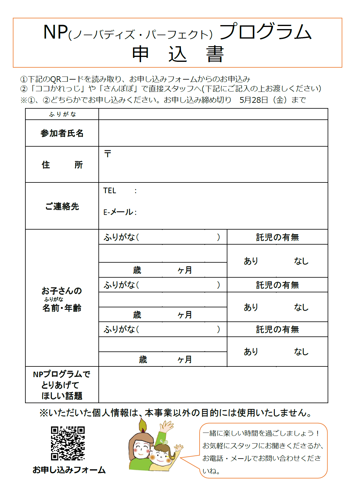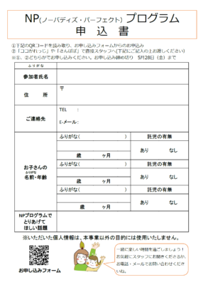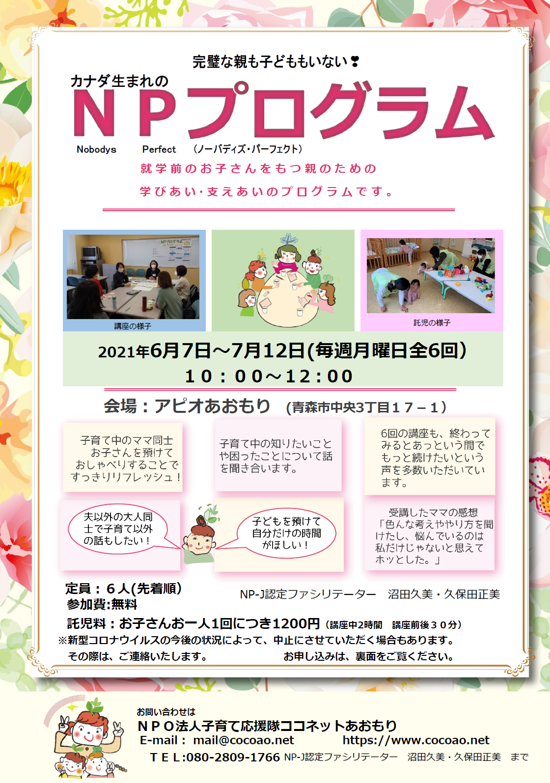 春のNPプログラムは6/7~7/12(毎週月曜日)