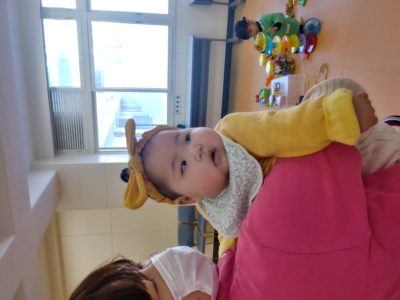 今日の1番乗りさんが、楽しく遊んでいます。笑顔が、可愛い~ ❤ ^-^v