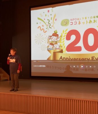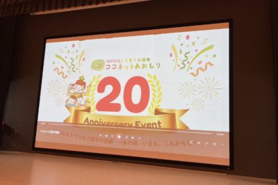 ステージ上の大きなスクリーンに、ココネットの20年分のいろんな場面がスライドショーで映し出されて、なつかしい顔がいっぱい。