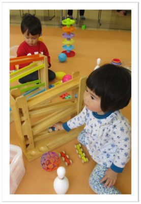 最初は、ママから離れずに遊んでいたね。 ママの姿が見えないと、不安そうに泣きべそ(泣いても~可愛いい💛)