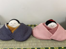 入り口にはスタッフお手製のおひなさまを飾っています。