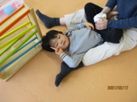 それでも、たまには休憩してもらおうと、手作りブランコをだして、ぶーらん、ぶーらん。