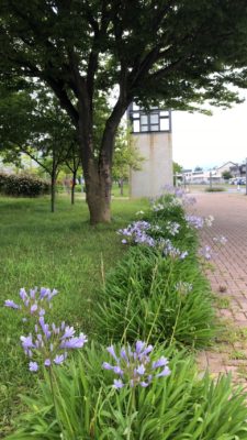 保健大学に、2週来ない間にアガパンサスの花が終わってました。