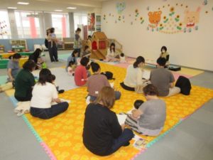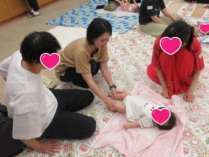 それから、ダンスの時間。とっても元気なお友だち(だーれかな?)が来てくれて、みんなで「サンサンたいそう」を踊りました。